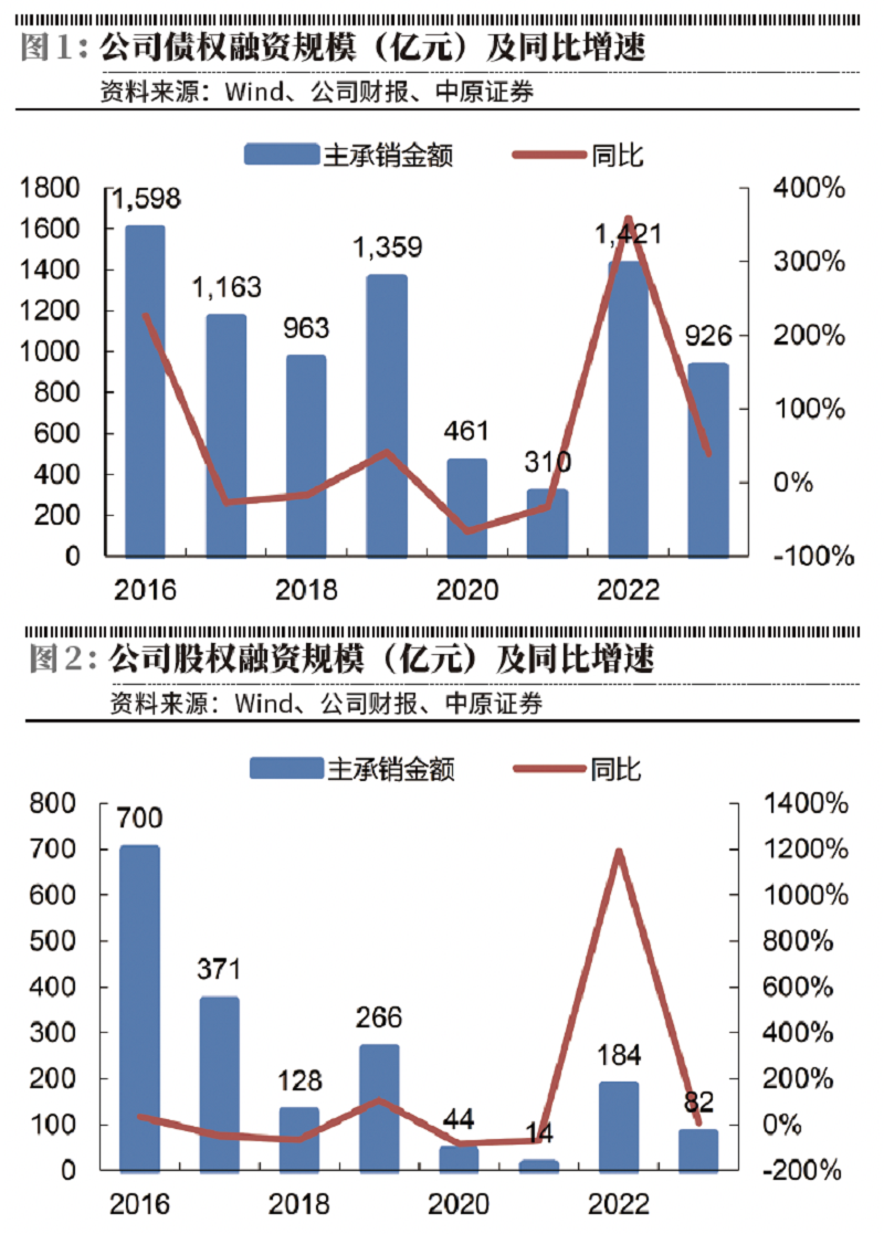 前三季度,公司主承销IPO融资规模为20亿元,同比下降4%,市占率为0.6%;再融资规模为55亿元,同比下降52%,市占率为1.3%;债券主承销金额为1861亿元,同比增长60%,市占率为1.9%。