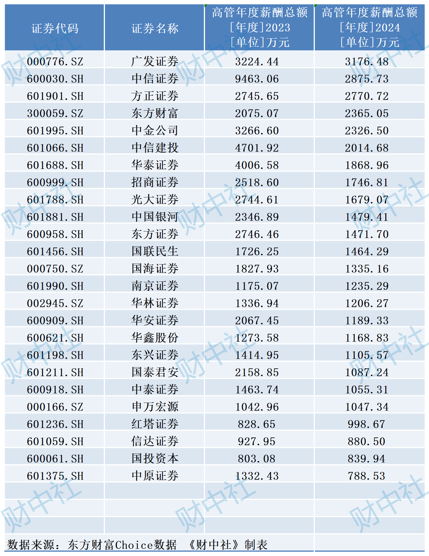 此外,广发证券披露的2024年年报展现出了券商行业薪酬分化的深层次情况。广发证券董监高年度薪酬总额达到3176.48万元,在已披露数据的上市券商中排名第一,较2023年微降1.5%。这和中信证券(600030)、中信建投(601066)等头部券商董监高薪酬同比降幅超过50%的情况,形成反差。