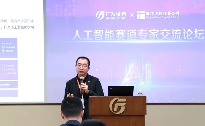 4月25日,“广发证券-国信中数人工智能赛道专家交流论坛”在广发证券大厦成功举办。本次论坛由广发证券股份有限公司与北京国信中数投资管理有限公司联合主办,汇聚了人工智能领域的50多位企业、行业协会、专业投资机构的代表,旨在搭建产学研资跨界对话平台,共同探讨人工智能时代的产业发展与投资机遇。