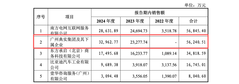 如果说债务问题是“不确定性”,那么 美亚科技 的客户结构变化则显得“讨论”。报告期内,一家名为“广州典实集团”的企业在2022年尚默默无闻,却在2023年突然跃升为前五大客户,销售金额高达2.33亿元,2024年上半年更是激增至3.29亿元。