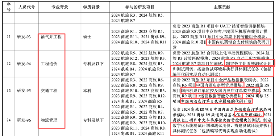 1、技术逻辑崩塌: 试问,一位钻研石油钻探的硕士(研发-93),如何胜任基于TCP协议的多级数据聚合开发?一位搞汽车维修(研发-103)或建筑预算(研发-94)的人员,如何编写复杂的运价数学模型?