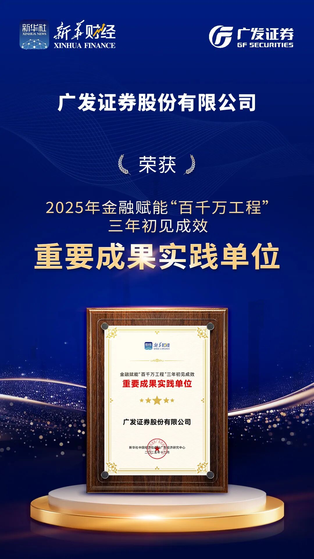 12月9日,由 新华通 讯社品牌工作办公室、 新华通 讯社广东分社和 中国经济信息社 共同主办的2025明珠湾气候投融资大会在广州南沙隆重举办。会议现场,正式发布了广东金融赋能“百千万工程”的重要成果《金融活水润泽南粤——2025年广东金融赋能“百千万工程”三年初见成效专题报告》,并重点表彰了过去三年在“百千万工程”实践中表现突出的银行业、保险业、证券业机构,启动了2026年金融赋能“百千万工程”走深走实暨产融对接项目库活动。 广发证券 凭借在赋能“百千万工程”、助力乡村振兴方面的创新实践与突出成效,获评“金融赋能‘百千万工程’三年初见成效重要成果实践单位”。