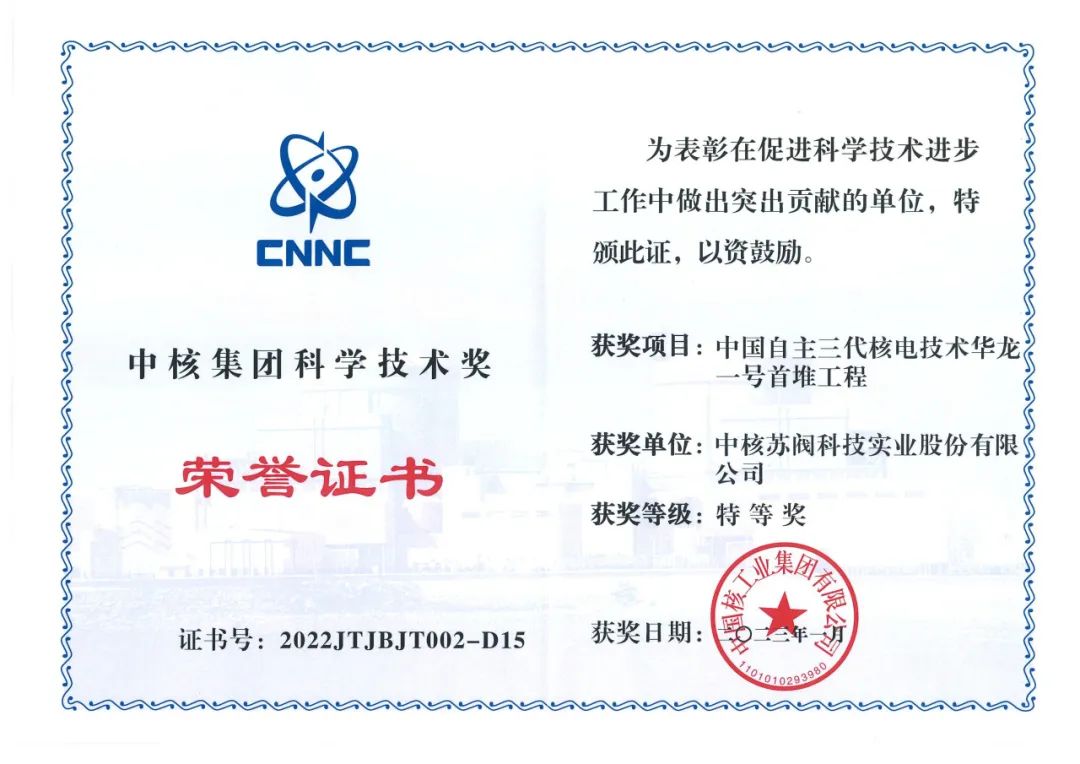 公司拥有已授权专利百余项。近年来,公司荣获国家能源局科技进步奖一等奖、中国机械工业科学技术奖一等奖、江苏省人民政府优秀项目奖、江苏省机械行业协会一等奖、中核集团公司科学技术奖二等奖等奖项50余项。公司核电站用关键阀门具备二代、三代核电机组阀门成套供货能力,四代核电机组关键阀门供货能力;核燃料真空阀及浓缩铀生产四大类国产化关键阀门总体性能达到或超过进口产品水平,具备成套供货能力;石油化工关键阀门具备百万吨乙烯、千万吨炼油阀门成套供货能力,加氢装置高压阀门、乙烯装置高温高压阀门等关键阀门性能达到国际先进水平;具备超(超)临界火电机组阀门成套供货能力,部分样机达到国内领先水平。“华龙一号”核一级稳压器快速卸压阀居国际领先水平,核二级主蒸汽隔离阀、CAP1400系列关键阀门、安全壳延伸功能地坑阀等产品居国际先进水平,DN800主蒸汽隔离阀获江苏省首台(套)重大装备产品认定;沸腾床渣油加氢装置含催化剂管道高温用工艺球阀、煤直接液化装置用高温高压物料分配柱塞阀通过鉴定、填补国内空白。