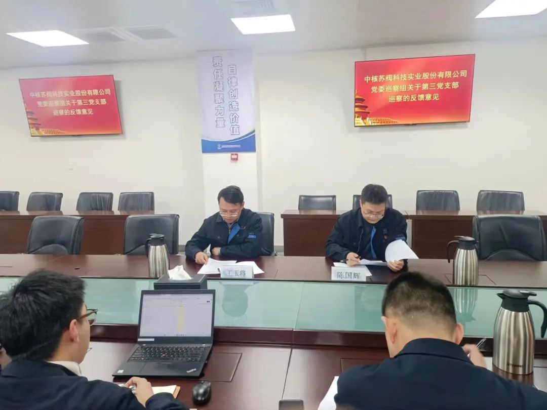 2月18日,中核科技党委巡察组向第三党支部(石油石化特种阀门事业部)反馈巡察情况。公司党委副书记、纪委书记、工会主席陈国辉出席会议并讲话。