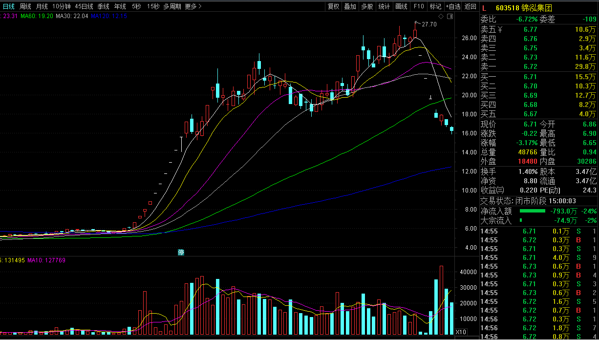 时代周报记者注意到,2021年4月16日,锦泓集团以上涨4.37%报收5.97元开始启动,此后一路最高涨至7月14日的27.70元,期间该股曾经连续11个涨停板,彼时一度被市场称之为“妖股”。