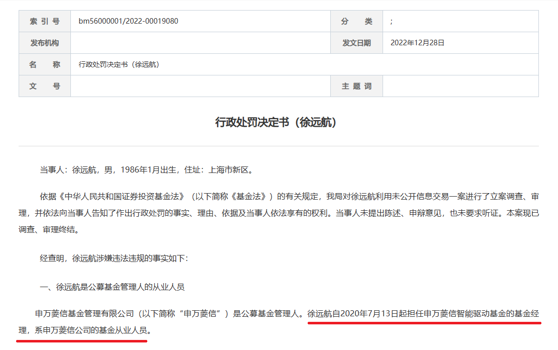 12月28日,河北证监局发布两则行政处罚书显示,申万菱信智能驱动基金的基金经理徐远航被责令改正,并处以50万元的罚款;长江证券(000783.SZ)研究员靳昕被给予警告,并处以3万元罚款。