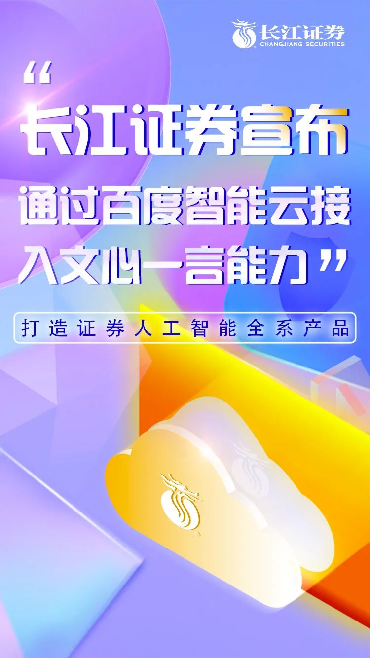 3月7日,长江证券股份有限公司宣布成为百度文心一言(英文名:ERNIE Bot)首批生态合作伙伴。后续,长江证券将通过百度智能云全面体验并接入文心一言的能力。