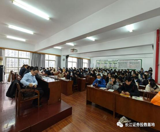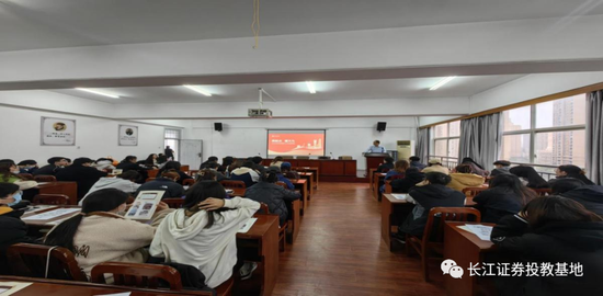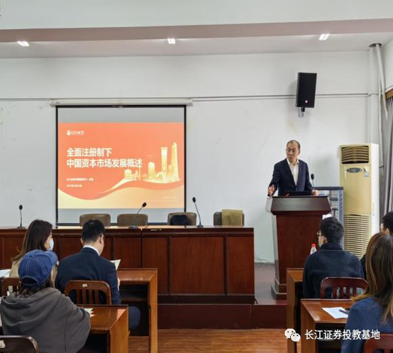 首先,长江证券投资者教育基地负责人主讲了《全面注册制下中国资本市场发展概述》,张老师介绍了中国资本市场三十年发展概况,已发展构建成型的中国多层次资本市场,以及中国资本市场最近十年的重大变化,在学生心目中植入了三十年中国资本市场翻天覆地变化全貌,阐释了全面注册制实施带来的崭新发展机遇,举出了未来涉足资本市场职业生涯具备哪些机会。
