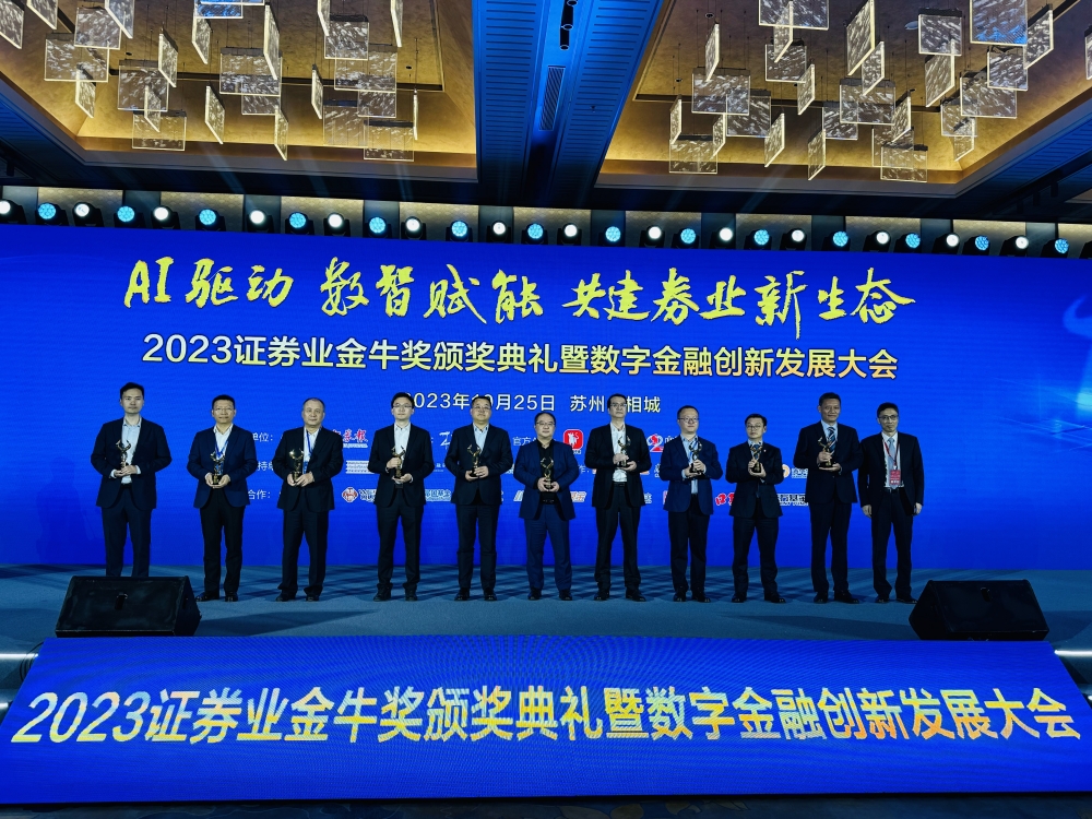 10月25日,由中国证券报主办的“AI驱动数智赋能共建券业新生态”2023证券业金牛奖颁奖典礼暨数字金融创新发展大会在苏州举办,数百名业内代表齐聚一堂,共同见证行业优秀力量集体登台。