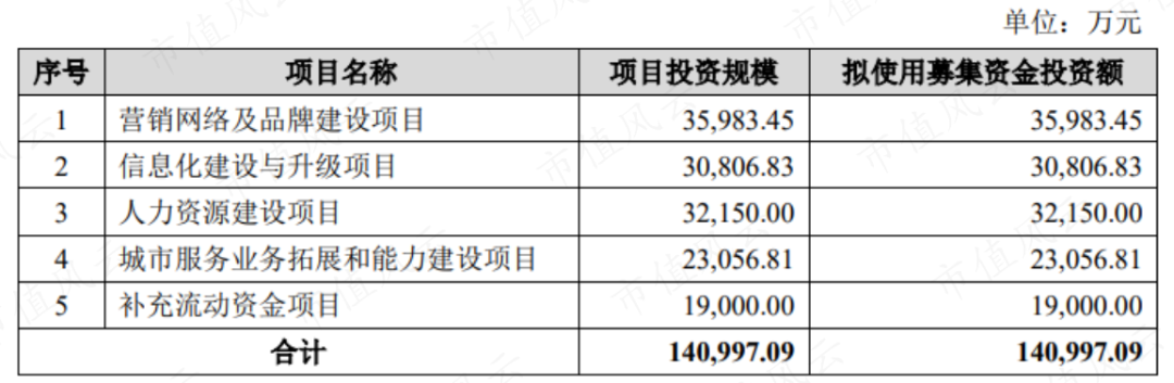公司拟募资14亿,其中1.9亿用于补流,作为物管公司,公司其余募集资金均用于营销、信息化建设、人力资源建设、业务拓展等虚头巴脑的项目。