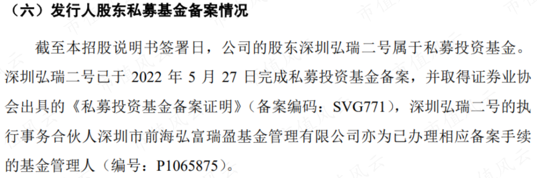 深圳弘瑞二号于2022年5月完成私募投资基金备案,且目前的对外投资仅公司一家,目的性很明确。