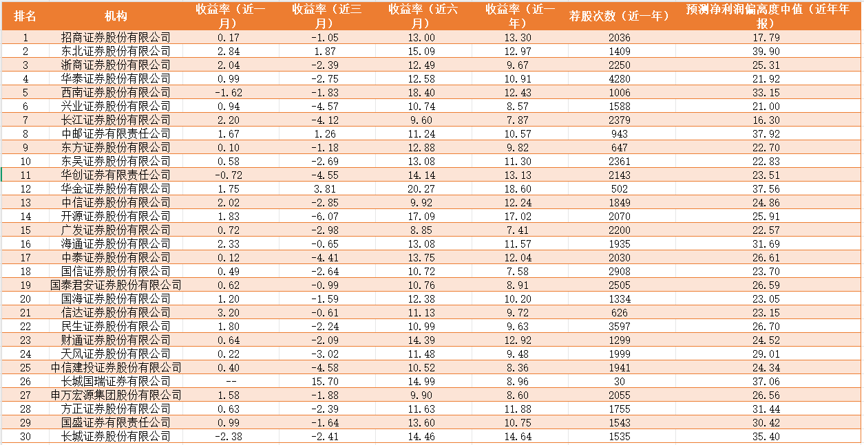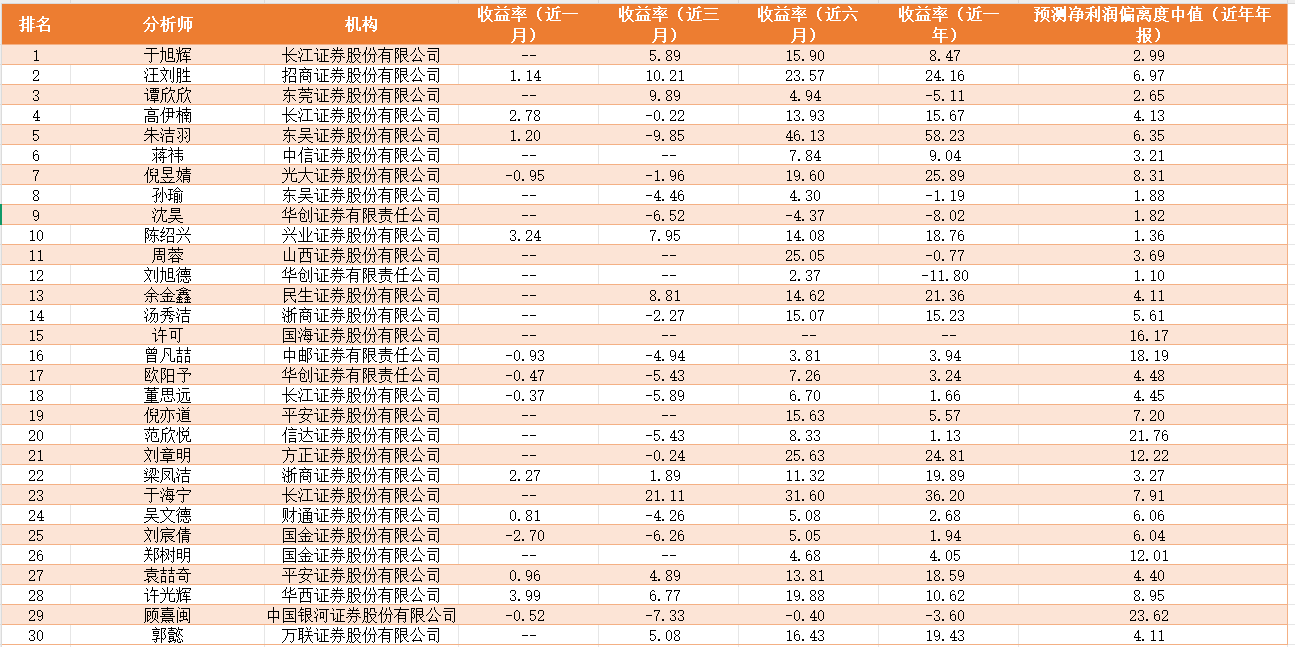 分析师实力榜前30名