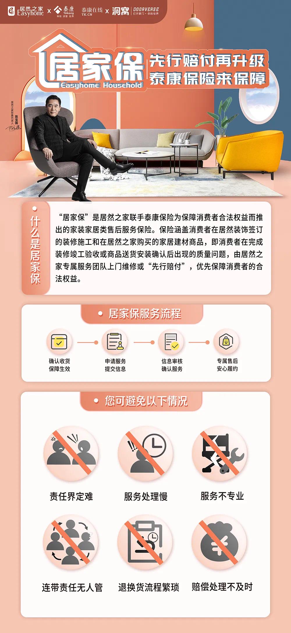 2023年1月1日起,居然之家与泰康联合推出的“居家保”在全国范围内全面推行!该项服务自2022年8月在北京上线以来便得到了消费者的认可与青睐。如今咱们重庆本地的消费者们也将能享受到这项消费保障。