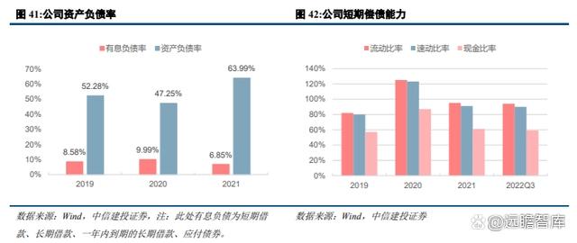 2022Q3 公司流动比率、速动比率和现金比率分别为 0.94、0.9、0.59,相较 2021 年有所下降,但是好于 2019 年水平,短期偿债能力稳健。
