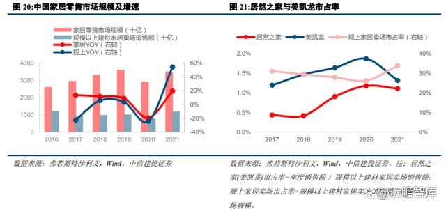 行业集中度也在提升,规模以上家居销售额占行业整体比重由 2020 年的 26.24%上升至 2021 年的 33.82%,也超过了疫情前水平。