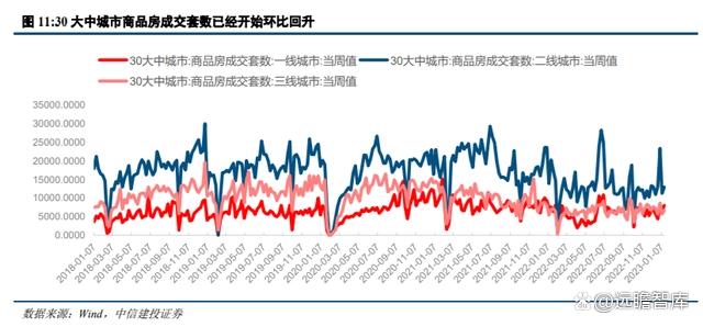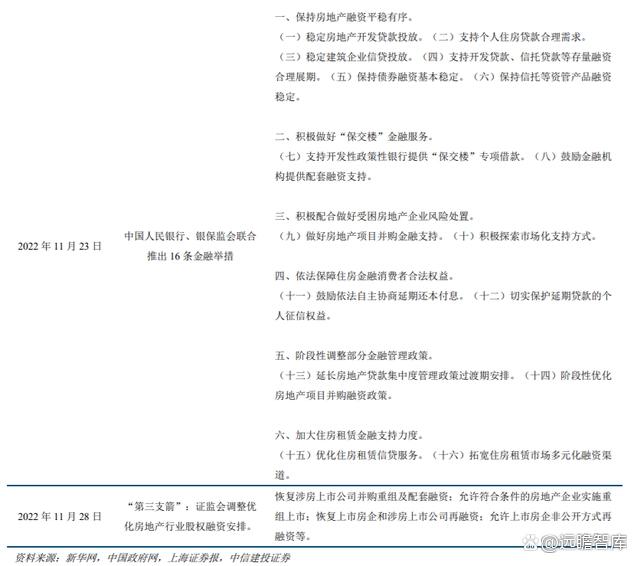 政府从信贷、债券和股权融资给予了房地产企业大力支持,预计 2023 年房地产企业现金流压力将得到缓解,保证住宅交付成为重要工作。