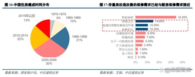 34%以上的房屋房龄达到了 20 年以上,52%的房屋房龄介于 9-20 年之间,老旧房屋改造、改善性装修需求存在较大潜在空间。