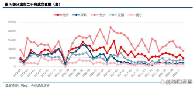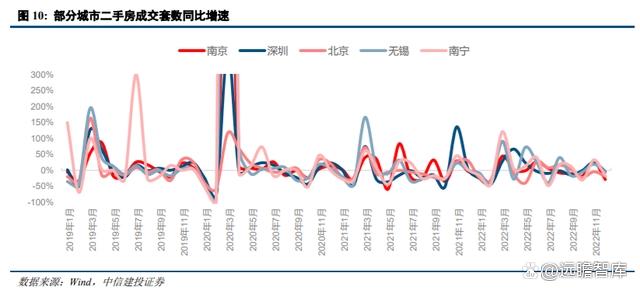 从部分城市二手房交易情况来看,2022 年成交数量较 2021 年偏弱。我们发现由于 2021 年疫情控制较好,因此部分城市二手房交易超过了 2019 年同期水平。
