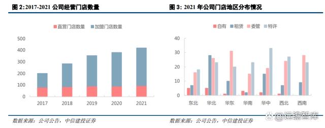 在一、二线城市选取核心优势地段开设直营门店,在三线及以下城市以加盟模式为主,以委托管理加盟和特许加盟两种模式灵活加速品牌扩张,加速门店下沉。