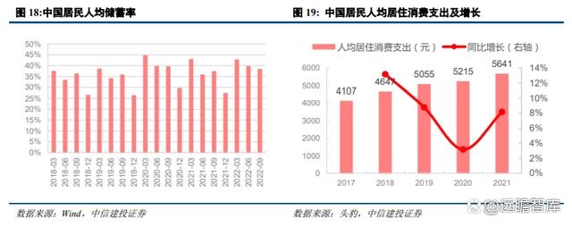 疫情对收入预期的影响以及房价对于资产预期的影响导致了居民储蓄增加,2022 年前三季度居民平均储蓄率为 40%,高于疫情前的 33%。
