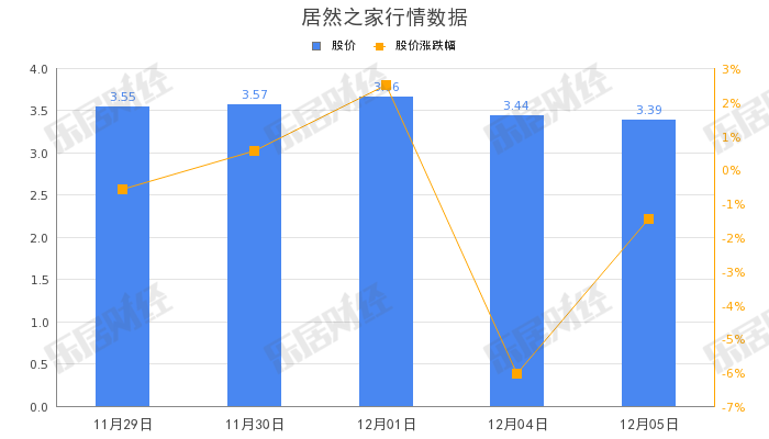 截至12月05日,居然之家(000785.SZ)股价收盘报3.44元,跌1.45%,总市值213.14亿元。