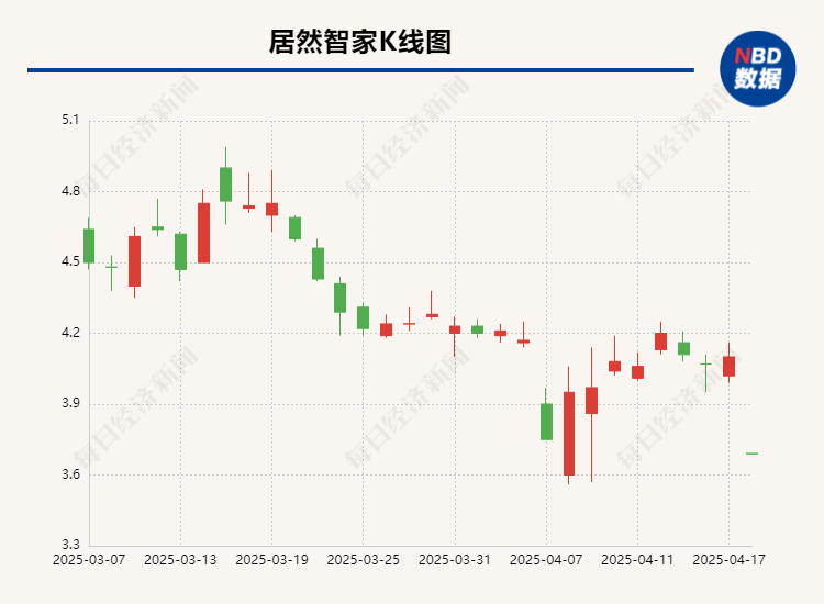 或受相关消息影响,4月18日,居然智家股价开盘跌停。