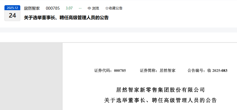 居然智家新零售集团股份有限公司董事会2025年 12 月 23 日
