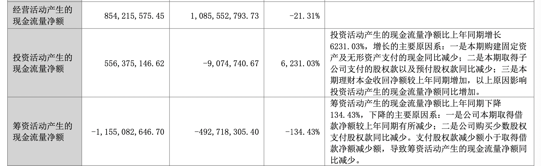 值得注意的是,其经营活动产生的现金流量净额为8.54亿元,同比减少21.31%;筹资活动产生的现金流量净额为-11.55亿元,上年同期为-4.93亿元。