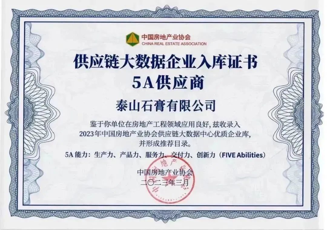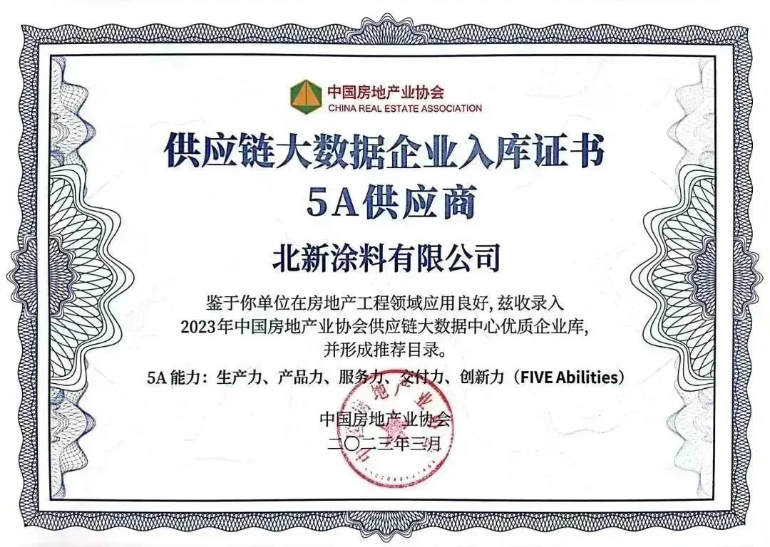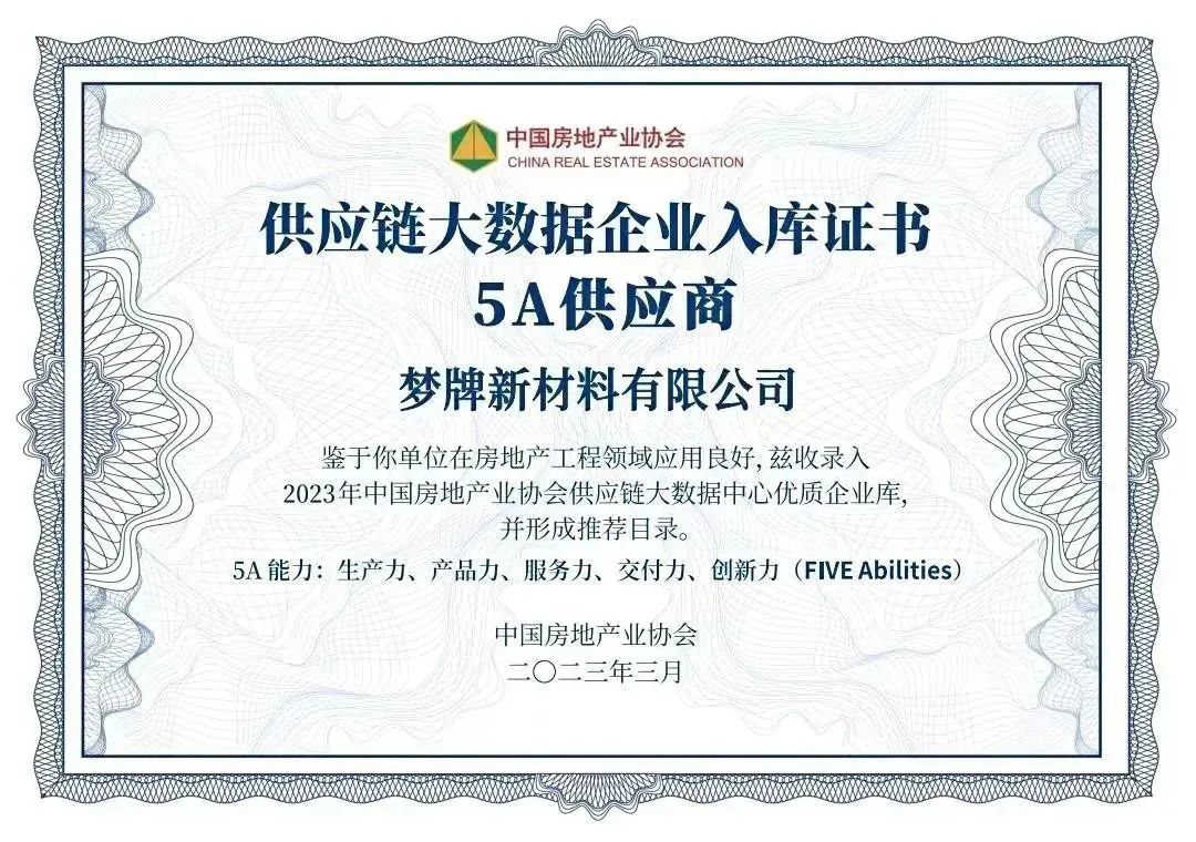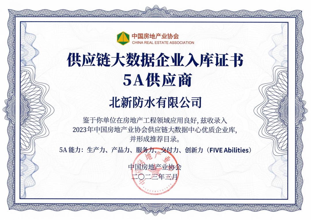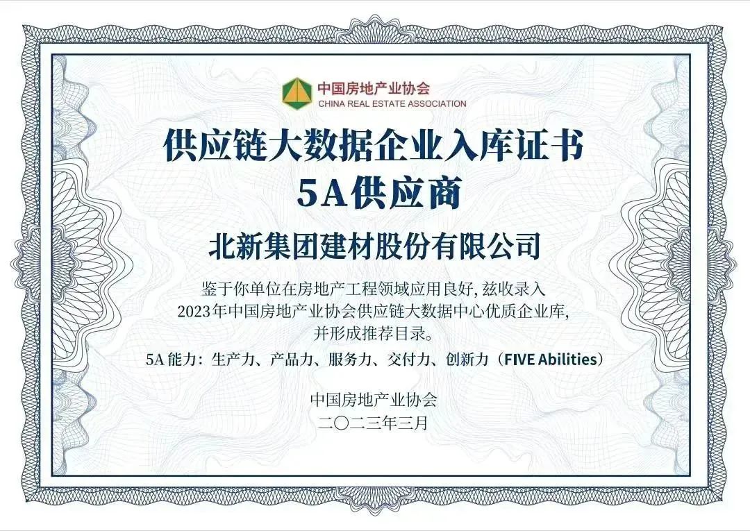 入选中国房地产业协会供应链大数据中心“5A供应商”企业库
