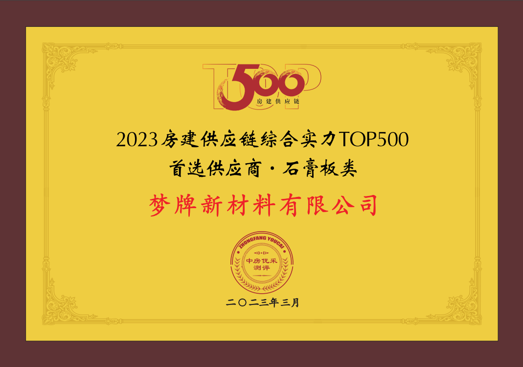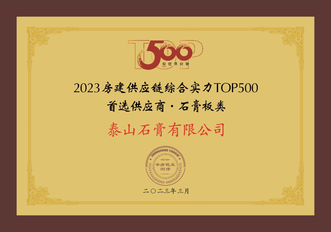 荣获“2023房建供应链综合实力TOP500首选供应商”