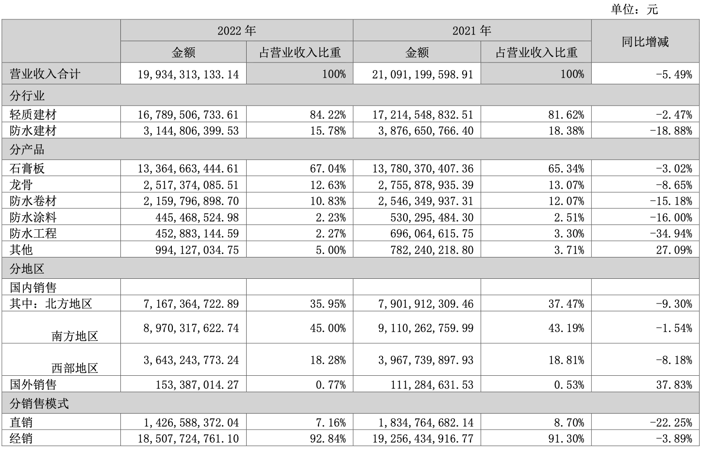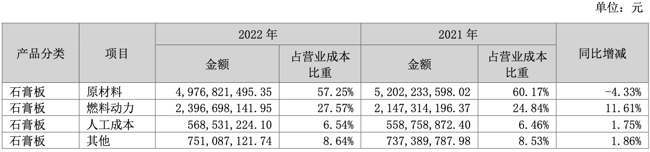 并直言,2022年其石膏板产量20.95亿平米,比上年下降13.53%;2022年石膏板销量20.93亿平米,比上年下降12.01%。石膏板业务增速高于行业增速,经营情况与行业发展情况相匹配。