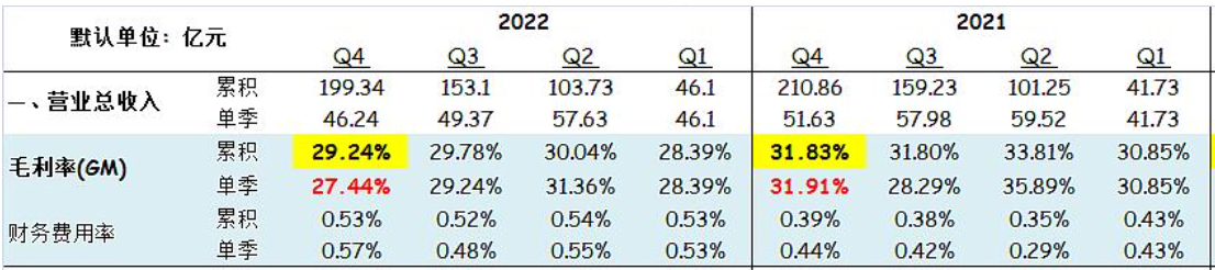 财报显示,2022年,其营业收入为199.34亿元,同比下滑5.49%;净利润为31.36亿元,同比下滑10.71%。横向对比其近5年来的营收数据,2018年至2022年,其营收分别为125.65亿元、133.23亿元、168.48亿元、210.91亿元和199.34亿元,同比增长12.55%、6.03%、26.12%、25.15%和-5.49%,2022年是近5年来其营收首次同比下滑。