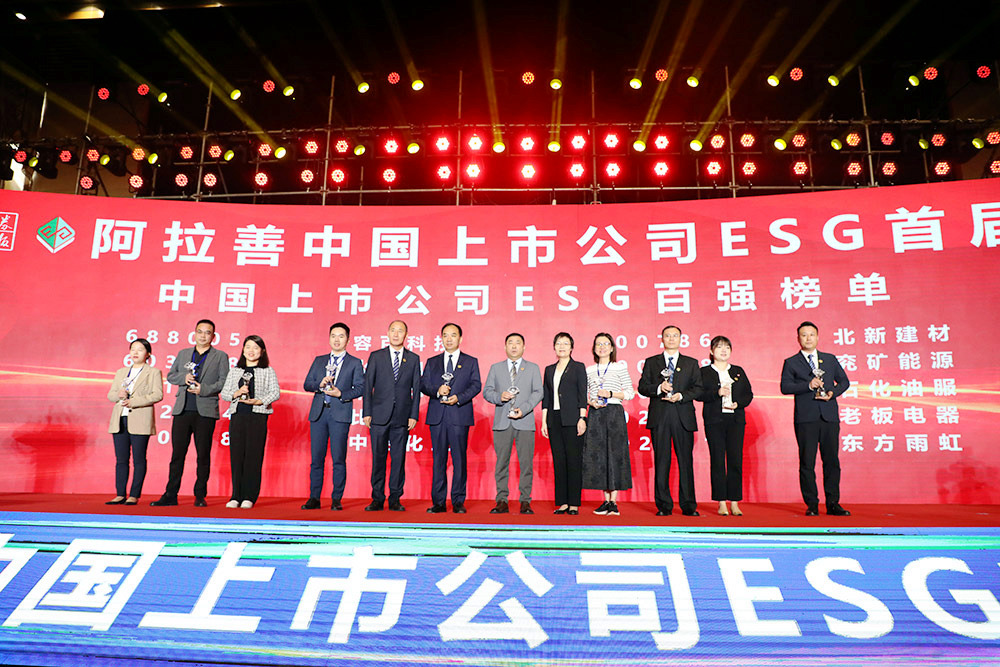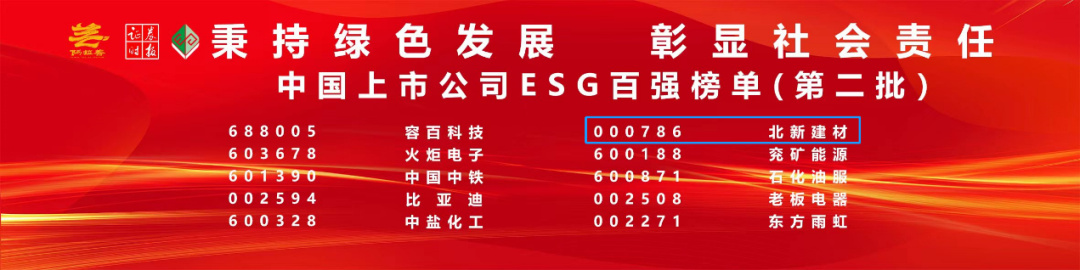 9月22日,由阿拉善盟行政公署联合证券时报社主办的“阿拉善中国上市公司ESG首届年会”在内蒙古自治区阿拉善左旗隆重开幕。会上发布了“证券时报ESG百强指数”,并隆重揭晓了“2023年度中国上市公司ESG百强”获奖名单,北新建材成功入选,体现了权威主流媒体和资本市场对北新建材深入贯彻绿色发展理念、努力推进公司高质量发展的高度肯定。