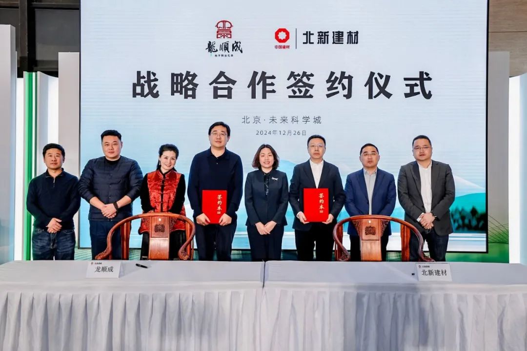 毛欣飞、田兆桐分别代表北新建材和龙顺成进行签约。从今年3月开始,北新建材携手龙顺成举办了多场文化活动。同为中华文化的坚定传承者,未来双方将携手共进,共同推动国潮建材、家居品牌的发展,共同打造央企与老字号合作样板。