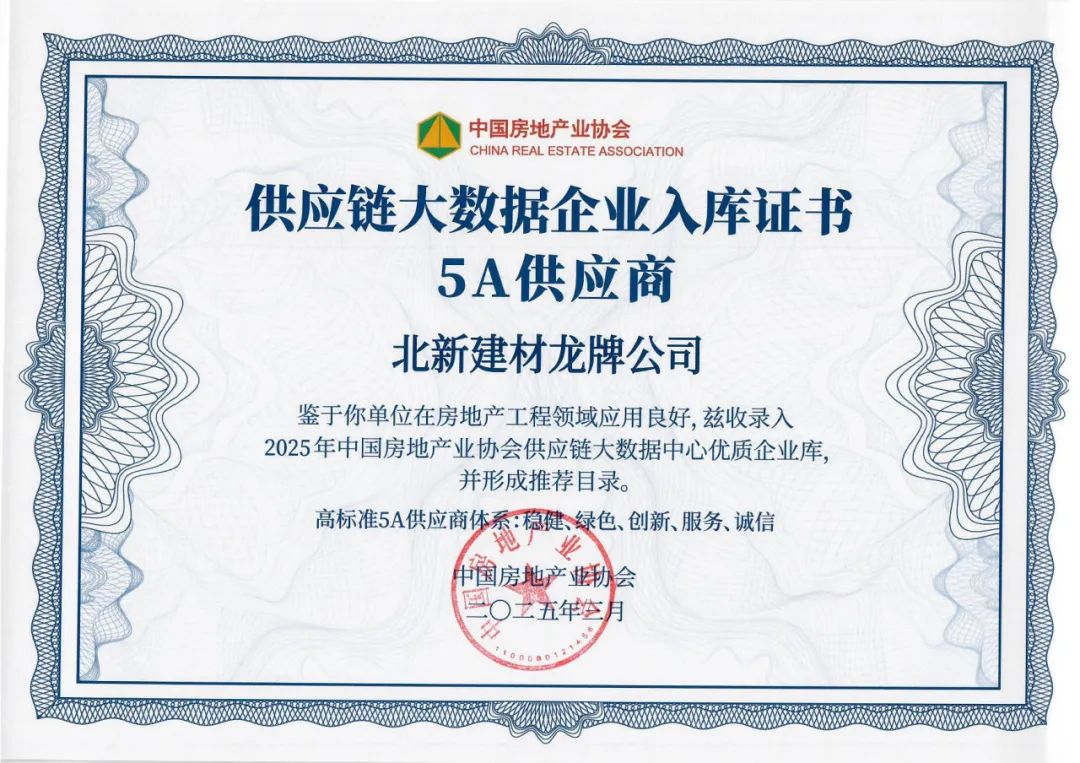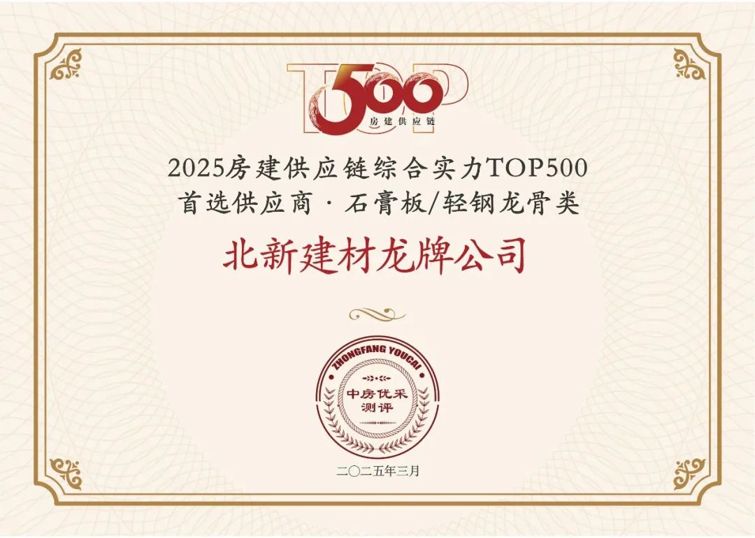 3月19日,2025中国房地产TOP500测评成果发布会暨房地产发展高峰论坛在京召开。会上发布了《2025房建供应链企业综合实力TOP500-首选供应商服务商品牌测评研究报告》,揭晓了“2025房建供应链企业综合实力TOP500”榜单,龙牌公司、泰山石膏、梦牌新材料、北新防水、北新涂料、北新嘉宝莉分别荣获石膏板类、防水材料类、涂料类“2025房建供应链综合实力TOP500首选供应商”,并入选中国房地产业协会供应链大数据中心“5A供应商”企业库。