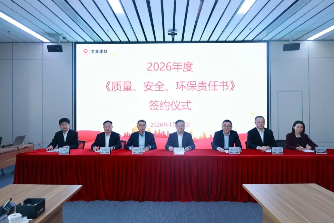 近日,北新建材举行2026年度经营业绩考核责任书及质量安全环保责任书签约仪式。北新建材党委书记、董事长、总经理管理代表北新建材管理层与各板块公司分别签订了2026年度《经营业绩考核责任书》和《质量、安全、环保责任书》。