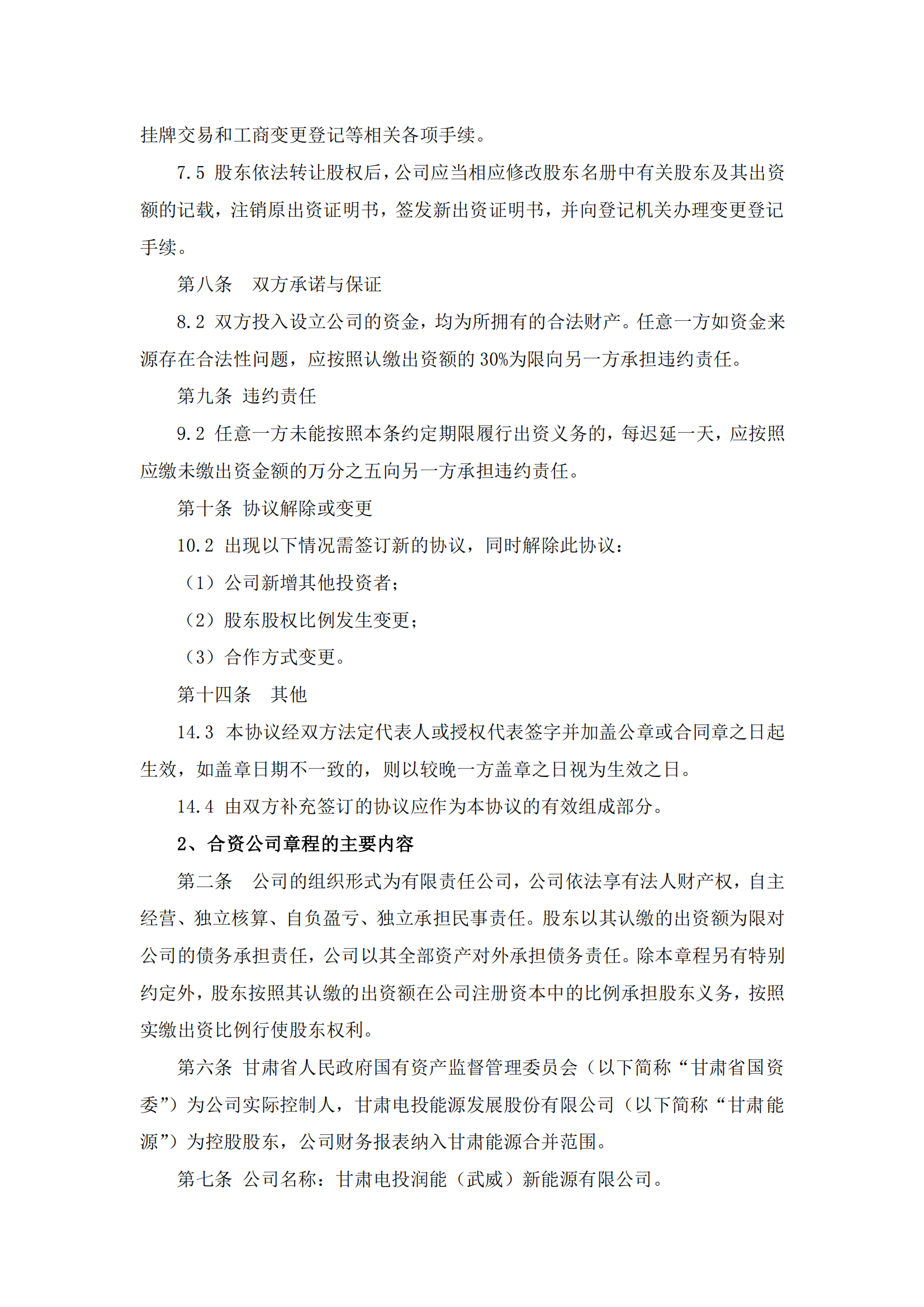 甘肃能源表示,公司成立合资公司是为加快推进大基地项目进度,能进一步推动公司主营业务发展。
