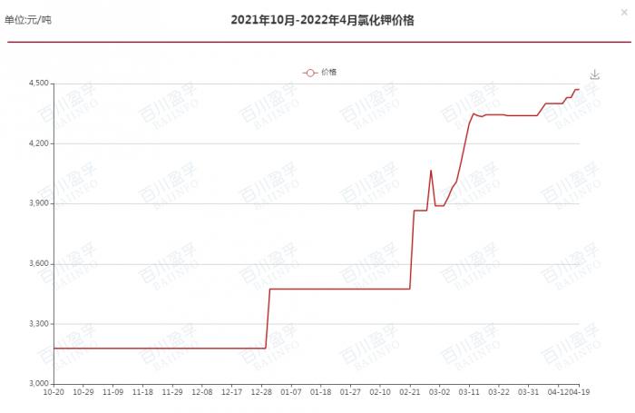 进入4月后,虽然锂盐价格出现高位回落,但是氯化钾涨势未有停止,最新价格逼近4500元/吨。