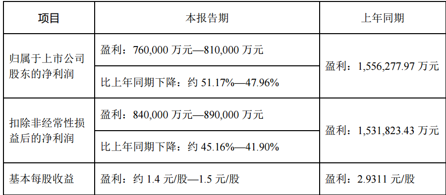 集微网消息,1月26日,盐湖股份发布2023年度业绩预告称,预计2023年归属于上市公司股东的净利润为760,000万元—810,000万元,同比下降51.17%—47.96%;预计扣除非经常性损益后的净利润840,000万元—890,000万元,同比下降45.16%—41.90%;基本每股收益约1.4元—1.5元。