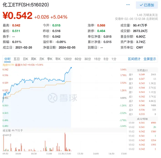 今日,化工板块早盘低开后迅速走高,午后更是直线拉升。跟踪细分化工指数的化工ETF(516020)午后再度强势上攻,截至发稿,场内价格涨5.04%。成份股方面,蓝晓科技强势领涨超15%,盐湖股份涨超7%、荣盛石化、宝丰能源涨超5%。