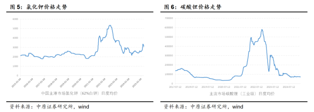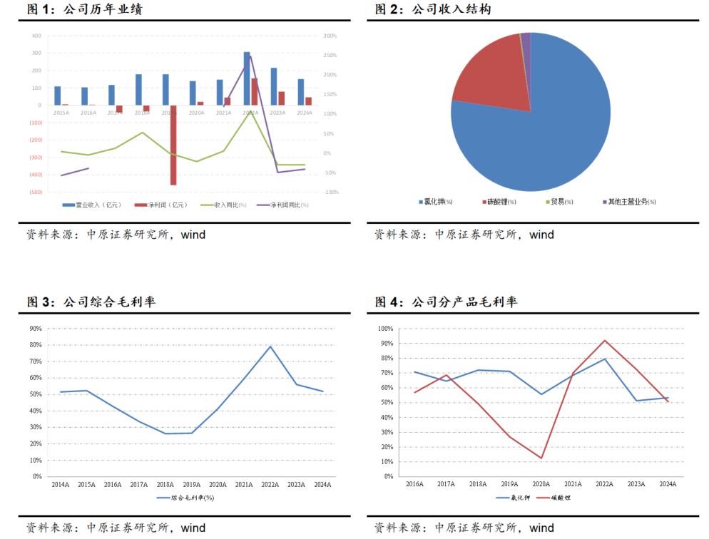 氯化钾景气有望逐步复苏。钾肥是资源性产品,广泛施用于大田作物和经济作物,需求保持稳健增长态势。供给面上,全球钾肥产能集中度高,寡头垄断明显。2024年以来,受供给端减产以及地缘政治影响,氯化钾价格逐步企稳回升。2025年以来,由于白钾和乌钾两大巨头检修减产,钾肥价格进一步上行,推动了公司一季度业绩的增长。未来国内即将进入春耕阶段,钾肥需求有望进一步提升。同时全球钾肥产能增速保持在较低水平,供应增量有限,有望推动钾肥价格与行业景气度的进一步复苏。