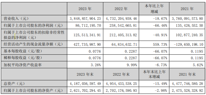 集微网消息,3月14日,英洛华发布2023年度业绩报告称,报告期内,公司实现营业收入384,885.79万元,同比下降18.67%;实现归属于上市公司股东的净利润8,671.22万元,同比下降66.46%。