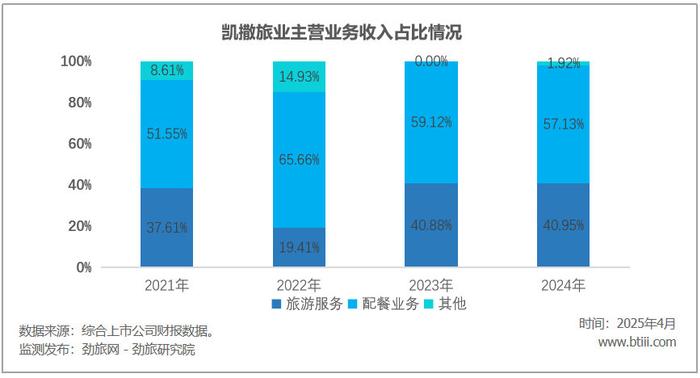 主营业务方面,旅游服务、配餐业务、目的地占比分别为40.95%、57.13%、1.92%。