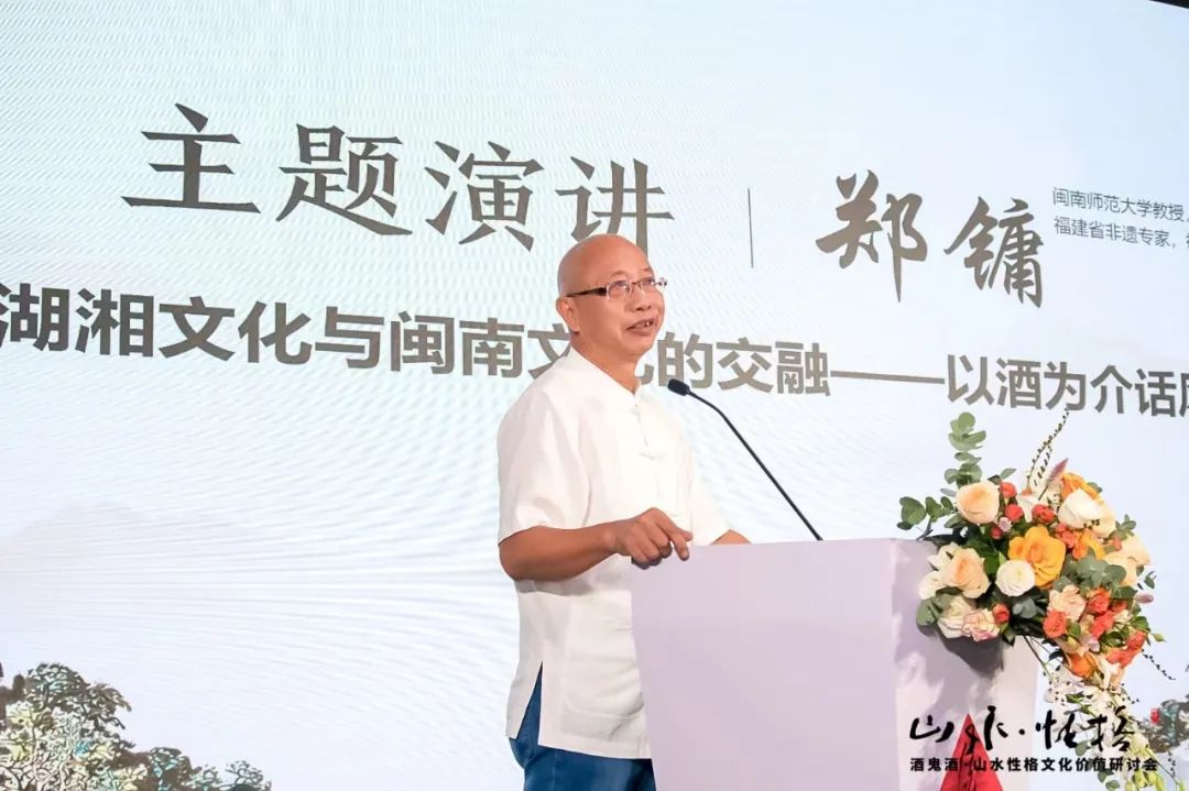 研讨会上,郑镛教授以酒为介话风俗,就湖湘文化与闽南文化的交融开了主题分享,依次对湖湘文化与闽南文化的各自特点以及闽南在酒文化上对湖湘文化的吸纳展开了论述,并对湘闽酒文化发展前景进行了展望。