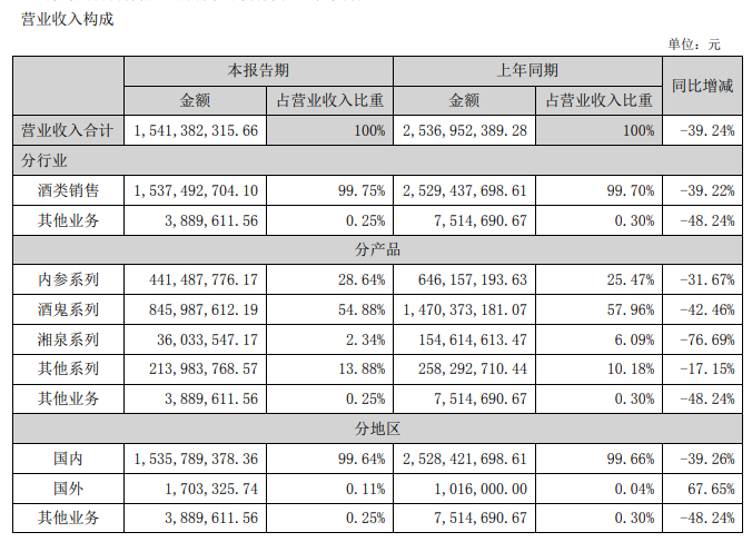 也就是说,在酒鬼酒上半年业绩的崩盘中,所有业务无一幸免。