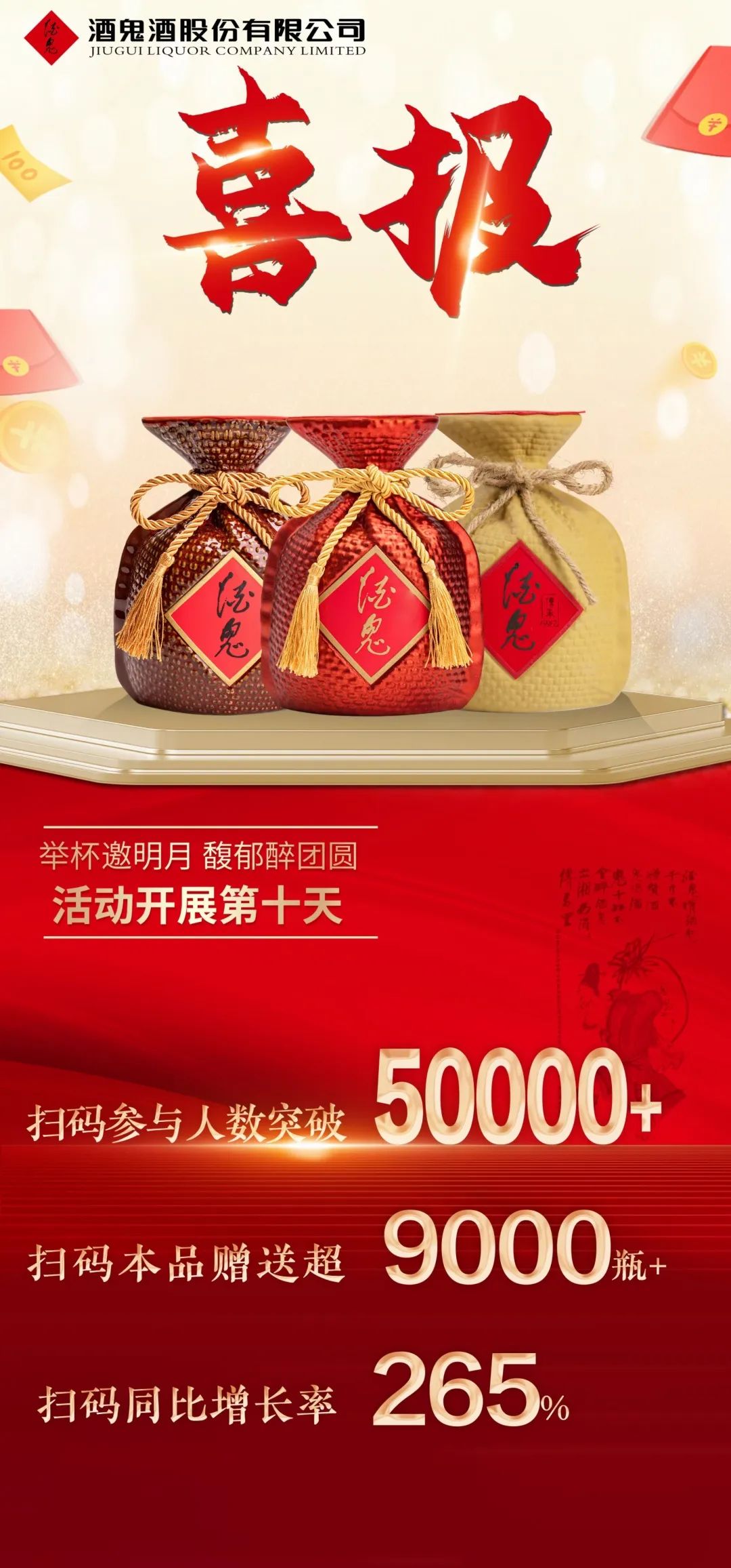 这样,C端扫码、B端激励,加上区域性的“补强活动”,酒鬼酒打造了“三位一体”的中秋大促。
