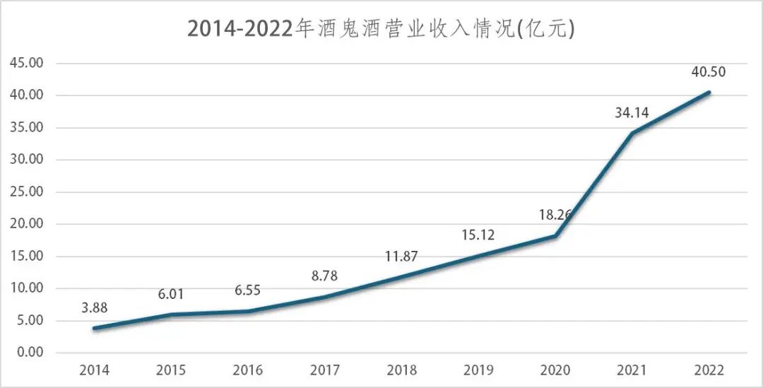 2014年,酒鬼酒营业收入仅3.88亿元,2018年酒鬼酒营业收入突破10亿元,在2021年直接由十亿元区间跨入三十亿区间。酒鬼酒在近三年来,都可以说得上是火箭般的增长。