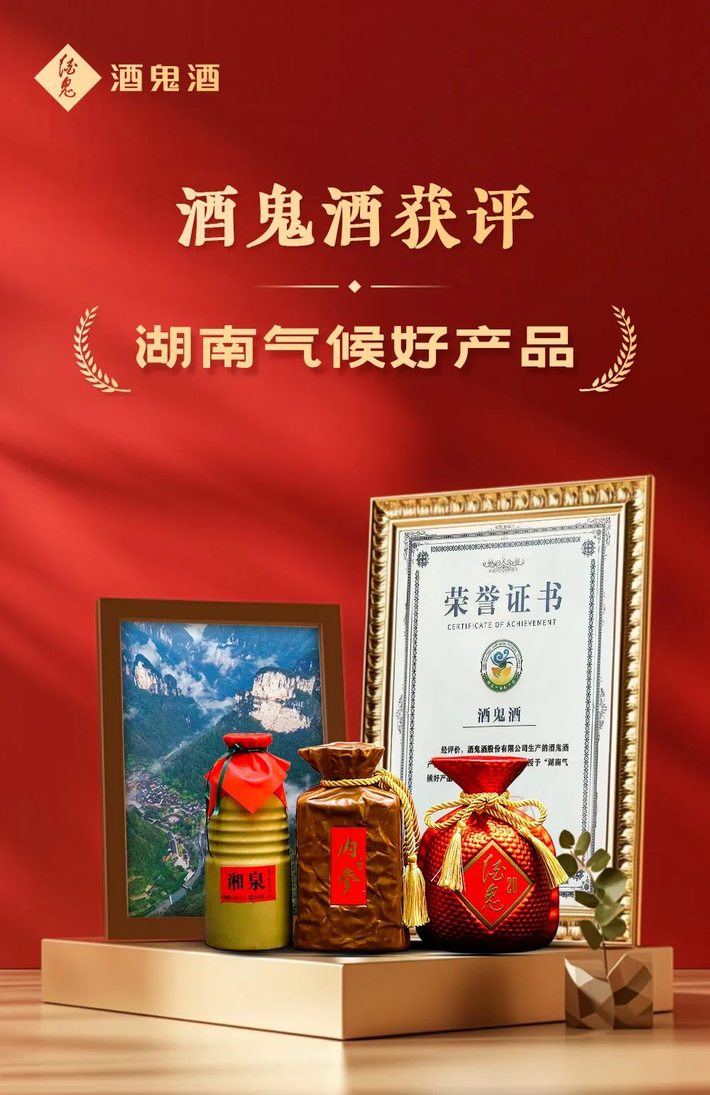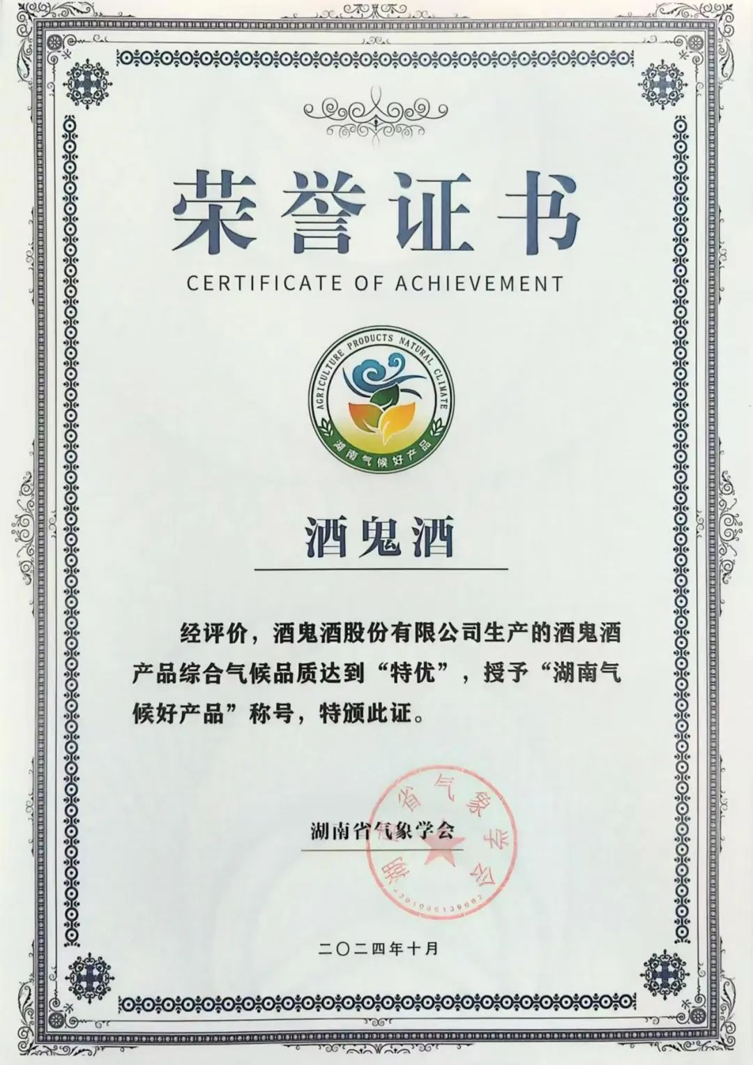 酒鬼酒产品综合气候品质达到“特优”!11月26日,“湖南气候好产品”证书颁发仪式在湖南长沙举行,酒鬼酒成为全国首个通过气候品质综合评价认定的白酒产品!这不仅是对其卓越品质的认可,更是对“中国酒谷·湘西”这一世界级产区优势的深度诠释。