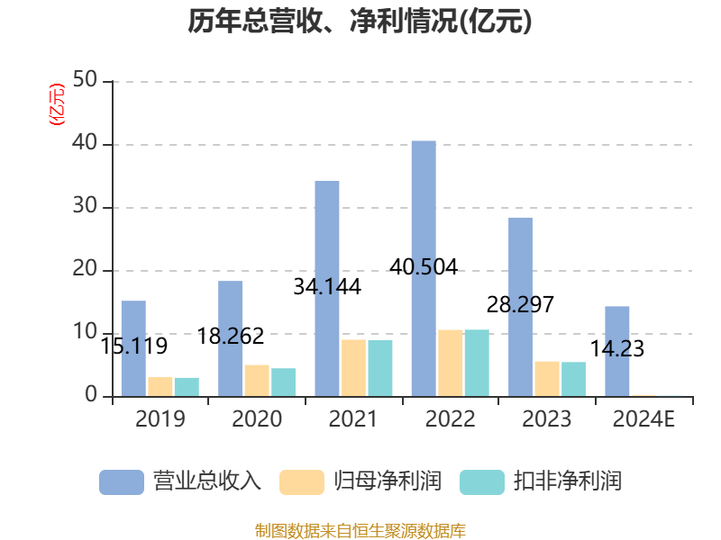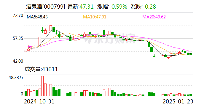 酒鬼酒(000799)1月23日晚间披露2024年度业绩预告,预计2024年实现营业收入14.23亿元,同比下降49.7%;归母净利润1000万元至1500万元,同比下降97.26%-98.17%;扣非净利润预计500万元-750万元,同比下降98.61%-99.07%;基本每股收益0.0308元/股-0.0462元/股。以1月23日收盘价计算,酒鬼酒目前市盈率(TTM)约为1024.83倍-1537.24倍,市净率(LF)约3.83倍,市销率(TTM)约10.8倍。