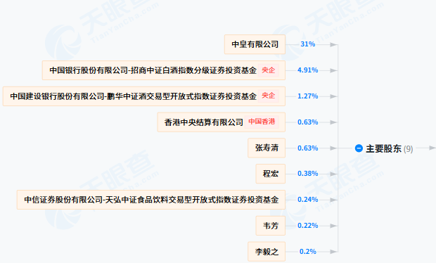 从显示的股东信息来看,酒鬼酒的股权结构呈现出明显的集中特征。中皇有限公司作为公司第一大股东,持有31%的股份,在此次分红中将独获超5000万元的现金红利,成为此次分红方案的最大受益方。